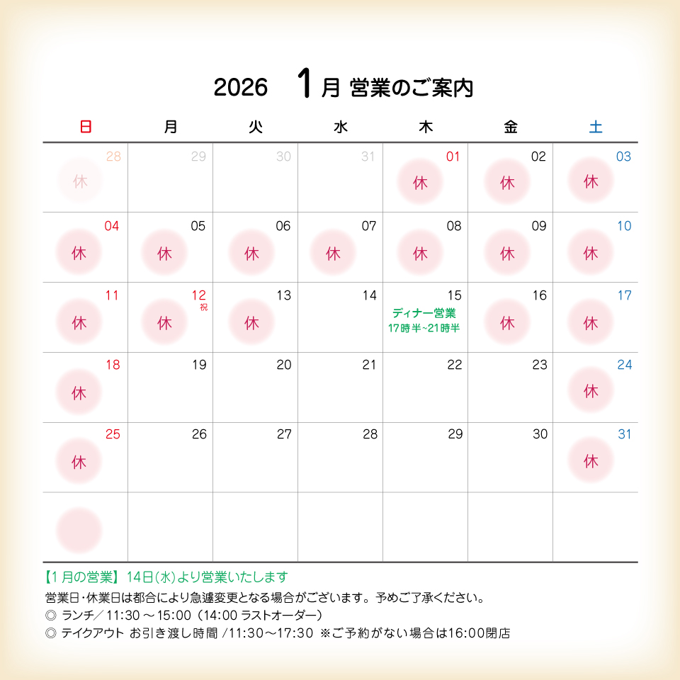 【2026年1月営業日のお知らせ】 営業日カレンダーはコチラ >>>
