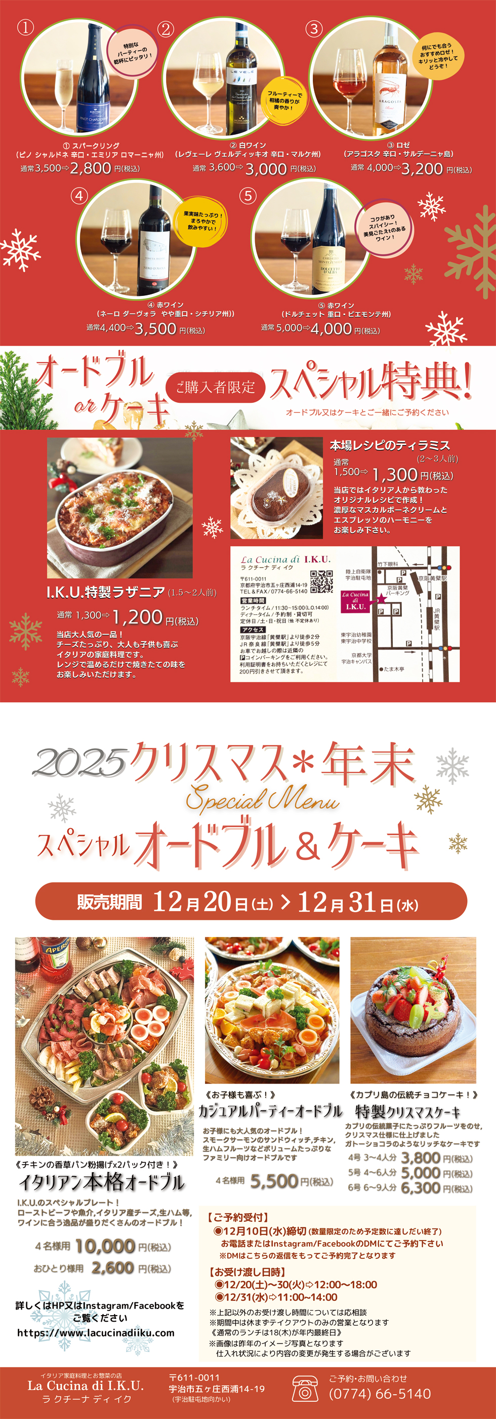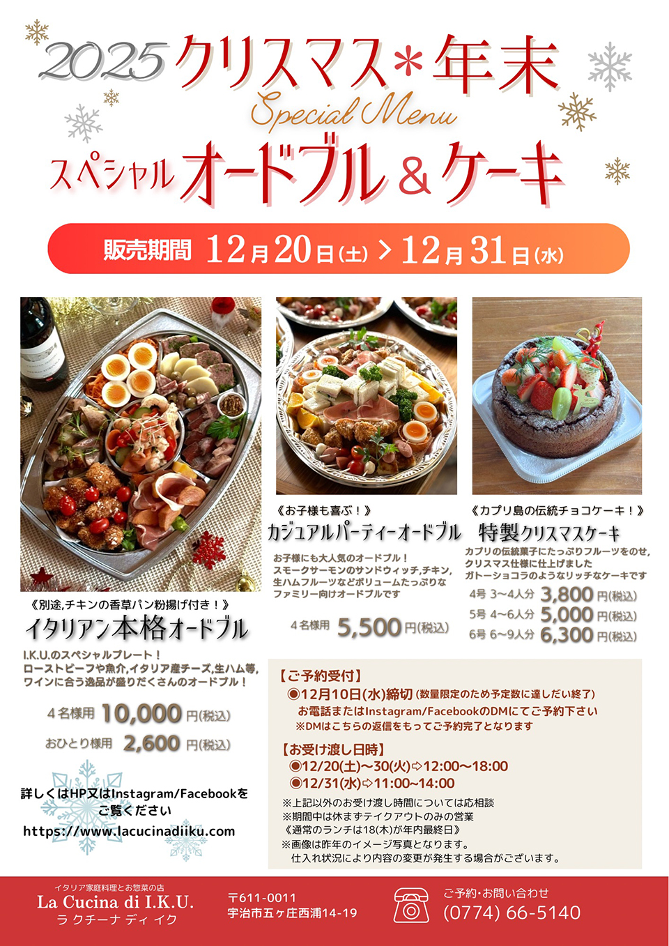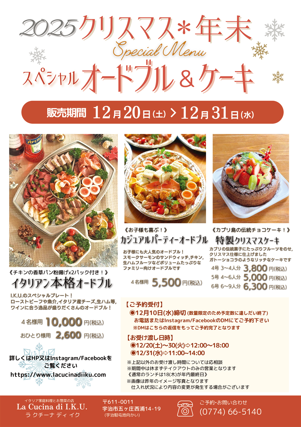 「2025クリスマス スペシャルオードブル&ケーキ」ご予約受付中!