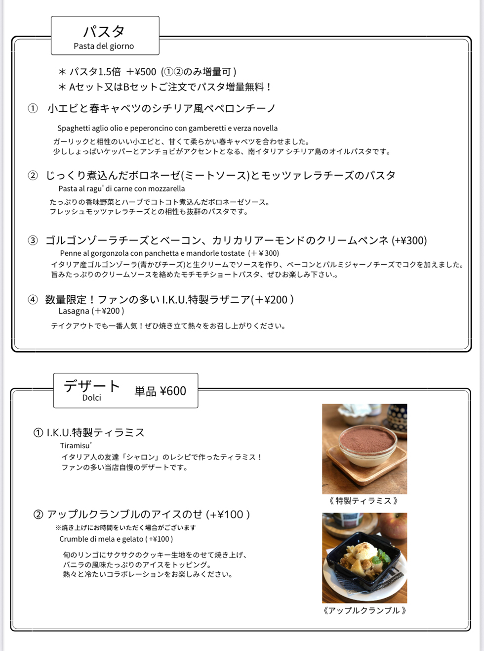 定番&季節のパスタを更新しました!