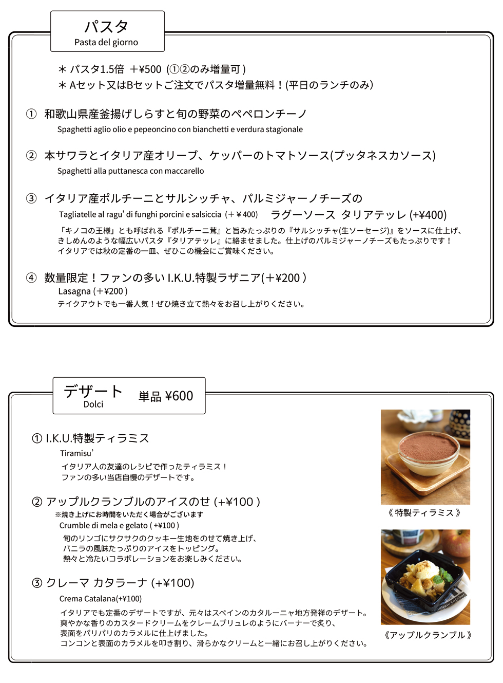 | ・特製ティラミス | 500円 |